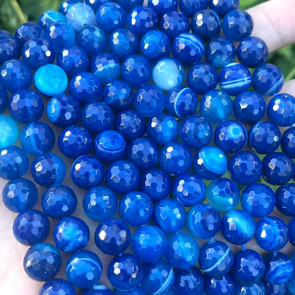 10mm faceted stripe agate beads, Blue, sold per pkg of 2 strands