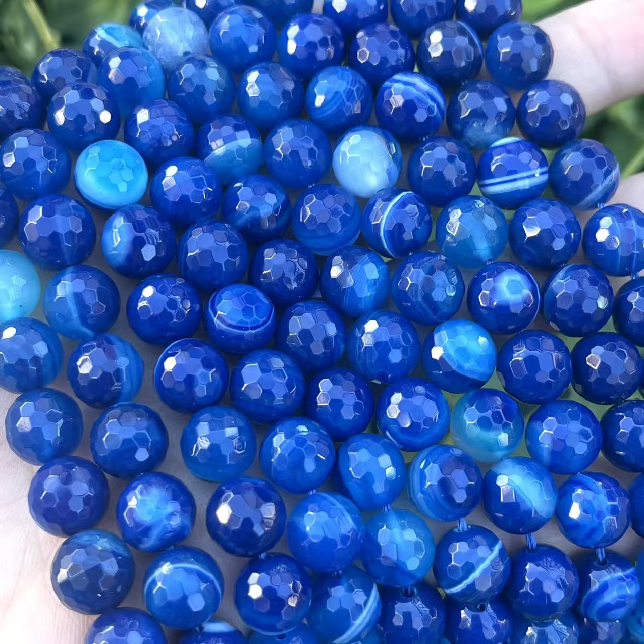 10mm faceted stripe agate beads, Blue, sold per pkg of 2 strands is backordered and will ship as soon as it is back in stock.