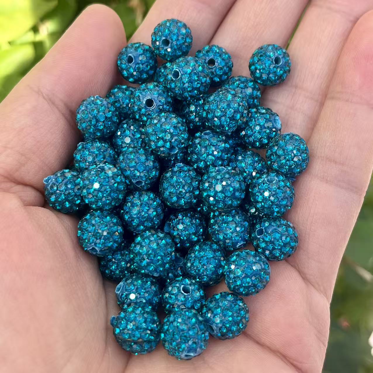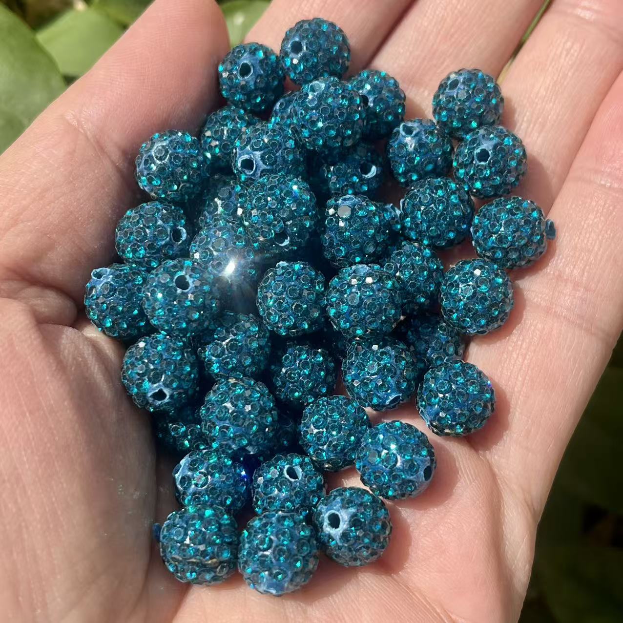 10mm Crystal Rhinestone Pave Clay Ball Disco Spacer, blue, sold per pkg of 50pcs