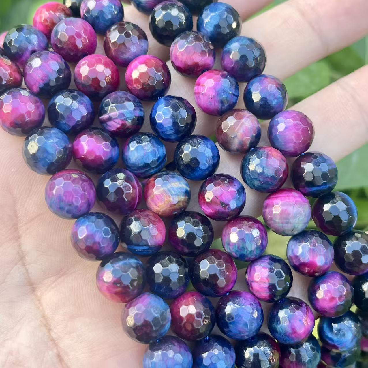 10mm faceted Galaxy tiger eye beads, Multi color, sold per pkg of 1 strand