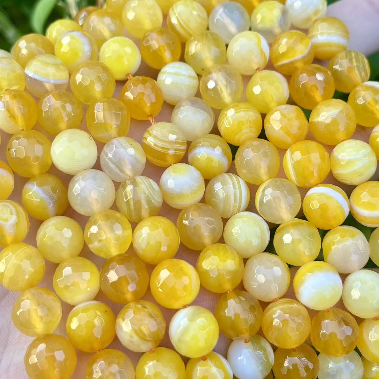10mm faceted stripe agate beads, Yellow, sold per pkg of 2 strands