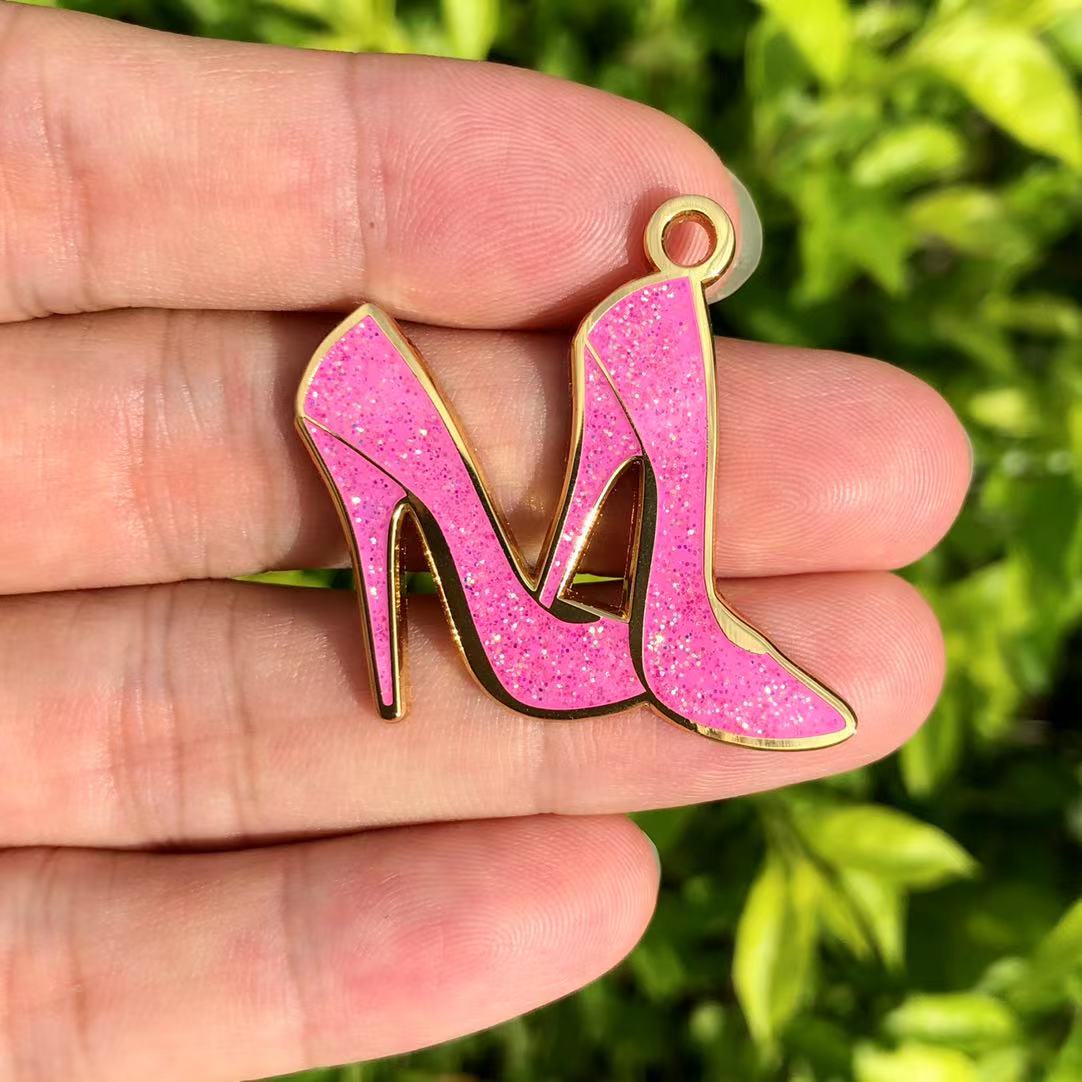 alloy heel charms, shoes, pink, sold per pkg of 10pcs